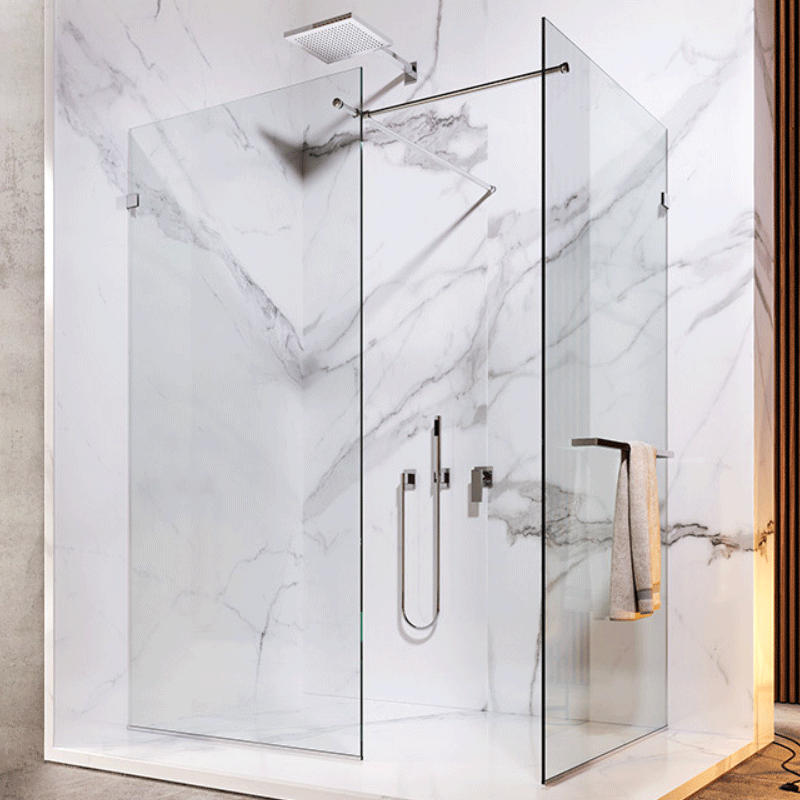 - захисне покриття скла. Сторона з покриттям (внутрішня, або зовнішня+внутрішня) буде покрита оригінальним екологічно чистим комплексом із чотирьох полімерів Європейського виробництва. Полімери проникають у структуру скла, створюючи захисний шар на молекулярному рівні, який запобігає утворенню мінеральних осадів на склі Вашої душової кабіни. Вода, що потрапляє на поверхню скла, відразу стікає, не затримуючись і не утворюючи плям.