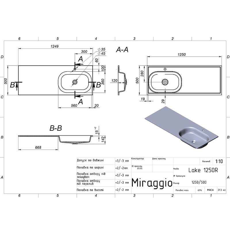 Фактичні розміри ДхШхВ, мм1250x500x142Висота бортику1.5Фактичні габаритні розміри ШхГхВ, мм1250x500x142Довжина, см125Ширина, см50Висота, см14.2Отвір під змішувачнемаєАртикул товару8815194Кількість чаш1Комплектаціяумивальник; гарантійний талонФормапрямокутнаМатеріаллитий мармурТип монтажумеблевий, врізний в стільницюРозташування чаші умивальниказбокуКраїна виробникУкраїнаТермін гарантіїГарантия от производителя10 роківСеріяLakeКолірбілий матовий, білий
