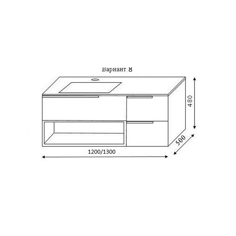 Тумба може комплектуватись різними стільницями і умивальниками. Для уточнення ціни, будь ласка, звертайтесь до менеджера. (098-113-49-49)